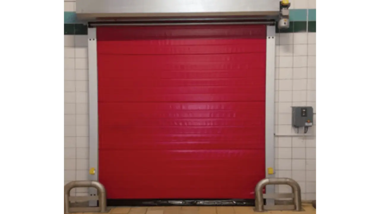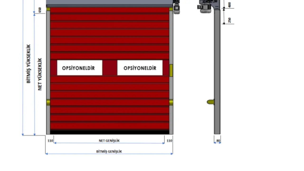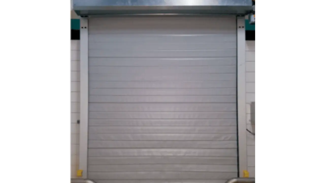 3N-TERMROLL Sarmal tip Isı yalıtımlı levhaları hızlı PVC kapı, Her iki taraf da 900gr/m⊃2; PVC branda malzemesinden mamul, arası 13mm poliüretan dolgu malzemesi ve PVC branda içerisine gizlenmiş çelik mil sıraları ile güçlendirilmiş yapıda, bir tambura sarılması ile çalışan iki yanda bulunan galvaniz dikmelerin kılavuzlarında hareket eden, şafta bağlı olan redüktör ve buna bağlı olan motorun çalışması ile epoksi boyalı çelik tambur üzerine çift kat PVC perde aksamını ve poliüretan dolgulu malzemeyi alttan yukarıya doğru çekmesi prensibiyle çalışan kapılardır.